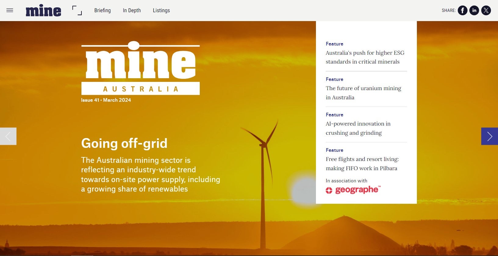 In this issue: the progress of on-site power at Australian mines, AI-powered innovation in crushing and grinding, Australia's push for higher ESG standards in critical minerals, and more.